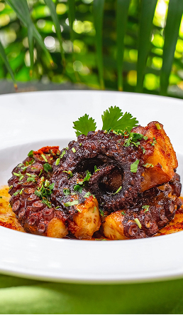 Tinta de calamar, sabor profundo y alioli suave casero.